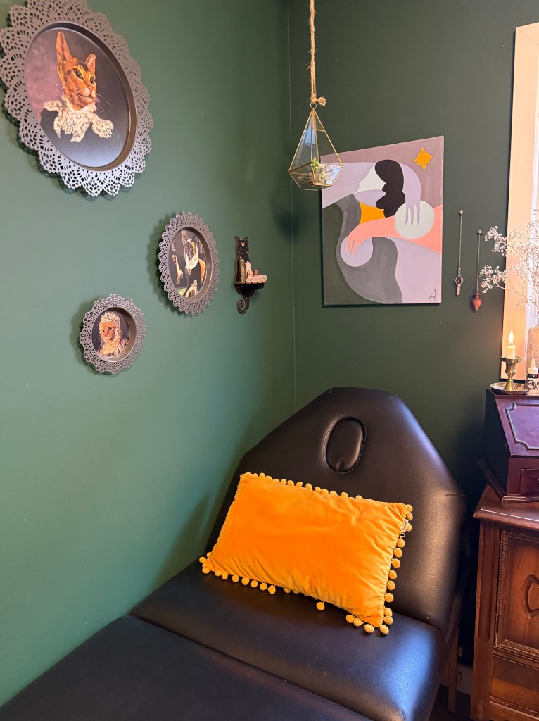 Starting the tattoo process with some calming breathe work, meditation, pulling a card, or finding a crystals energy to hold onto can have a powerful effect on the tattoo procedure.